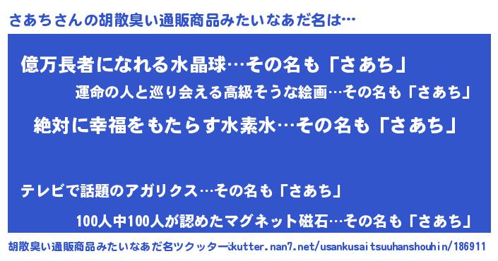 | 意味不明あだ名 | 『永久保存さあち』『ペロリンさあち』 |