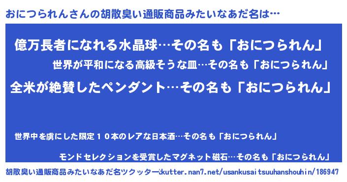 | 意味不明あだ名 | 『とにかく怪しいおにつられん』 |