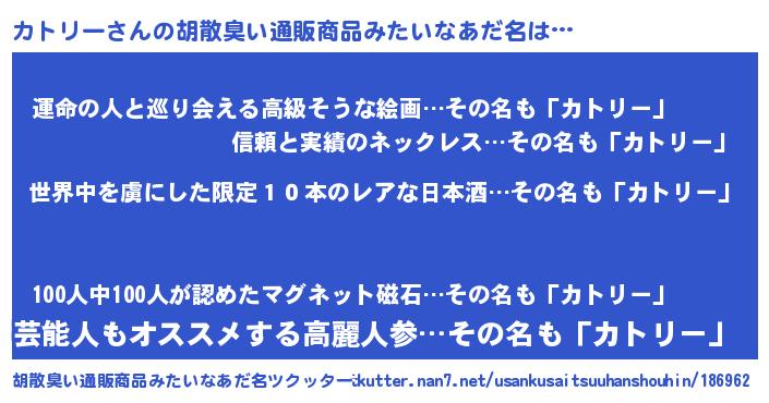 | 意味不明あだ名 | 『住所不定無職カトリー(43歳)』 |