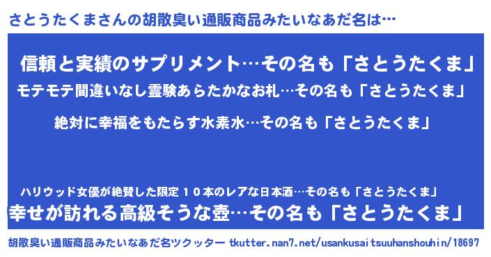 | ヒーロー風カッコイイあだ名 | 『ネオサトウタクマ』『黄金騎士サト』 |