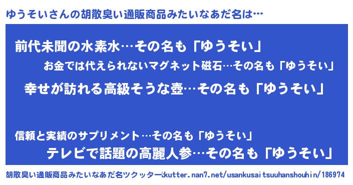 | 意味不明あだ名 | 『ゆうそいフォーエバー』『自称ゆうそい』 |