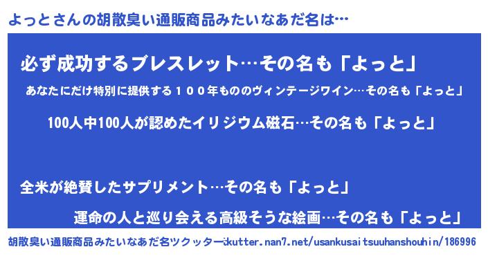 | ヘコむあだ名 | 『よっにゅー』『牛乳』『よっお』 |
