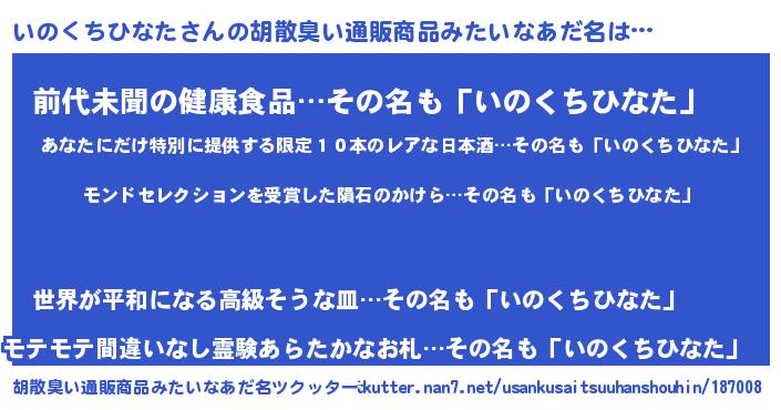 ヘコむあだ名 | 『いのくちひなた(遠い目)』『いのもー』 |
