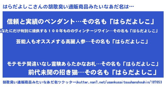 | 意味不明あだ名 | 『自称はらだよしこ』 |