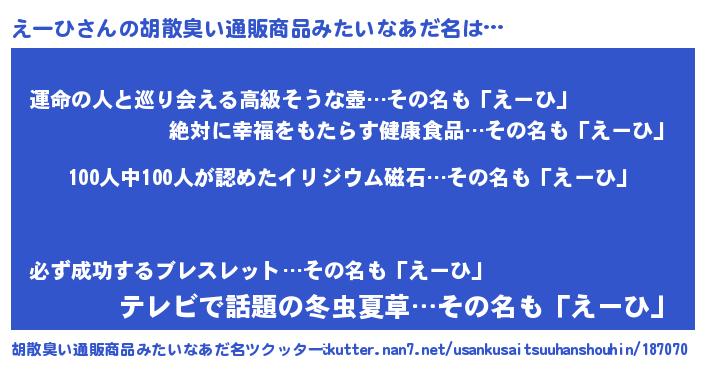 | ヒーロー風カッコイイあだ名 | 『正義の使者えーひ』『最強戦士エーヒ』 |