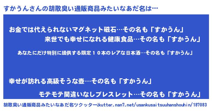 | 意味不明あだ名 | 『住所不定無職すかうん(41歳)』 |