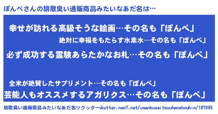 | 意味不明あだ名 | 『ペロリンぽんぺ』『ぽんぺフォーエバー』 |