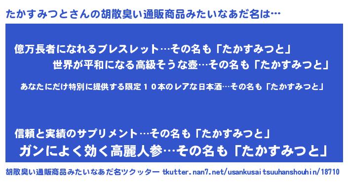 | 意味不明あだ名 | 『住所不定無職たかすみつと(65歳)』 |