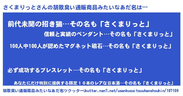 | ヘコむあだ名 | 『さくまりっと(笑)』『さく太郎』 |