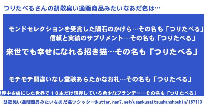 | 伝説のあだ名 | 『古より伝わる吟遊詩人つりたべる』 |