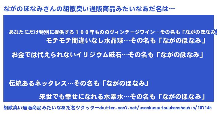| ヘコむあだ名 | 『ながのほなみ(爆)』『ながっふぃ~』 |
