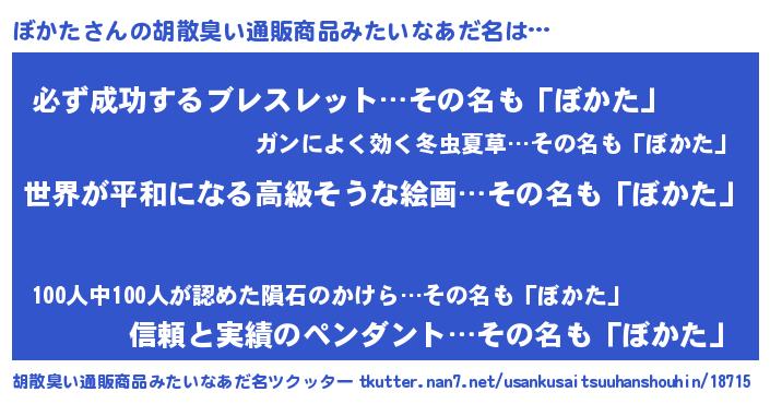 | ヒーロー風カッコイイあだ名 | 『ウルトラぼかたマン』『スーパーボカタ』 |