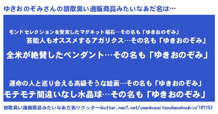 | 意味不明あだ名 | 『とにかく怪しいゆきおのぞみ』 |