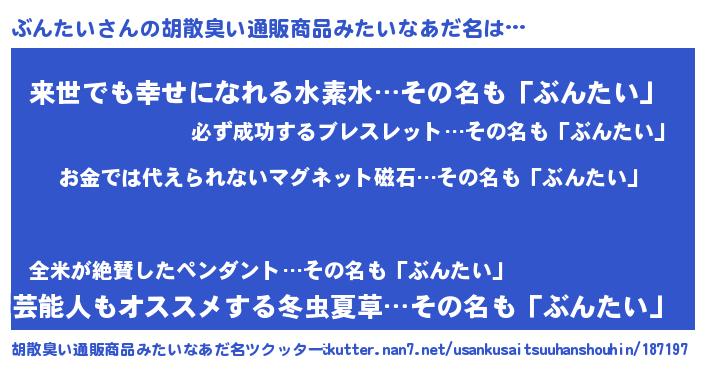 | ヒーロー風カッコイイあだ名 | 『愛の使者ぶんたい』『ネオブンタイ』 |