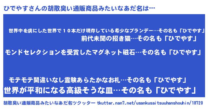 | ヘコむあだ名 | 『レバニラ』『ひでやす(笑)』 |