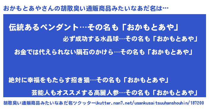 | 肩書あだ名 | 『おかもとあや中将』『おかもとあや教授』 |