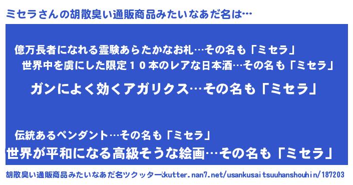 | ヒーロー風カッコイイあだ名 | 『ウルトラ戦士ミセラ』『スーパーミセラ』 |