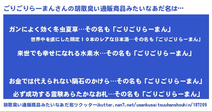 | 意味不明あだ名 | 『永久保存ごりごりらーまん』 |