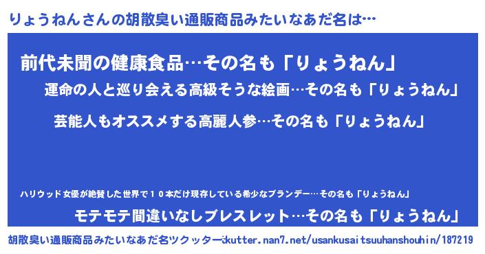 | 意味不明あだ名 | 『自称りょうねん』『永久保存りょうねん』 |