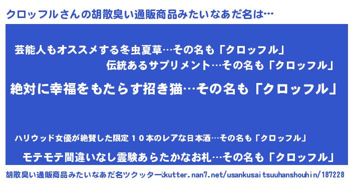 | ヒーロー風カッコイイあだ名 | 『ネオクロッフル』『最強戦士クロッフル』 |