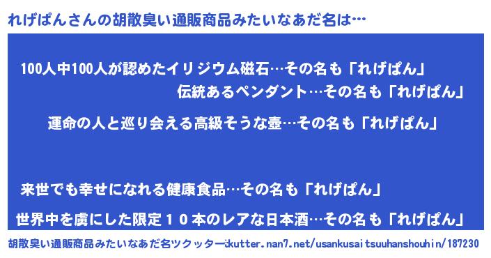 | 意味不明あだ名 | 『れげぱんフォーエバー』 |