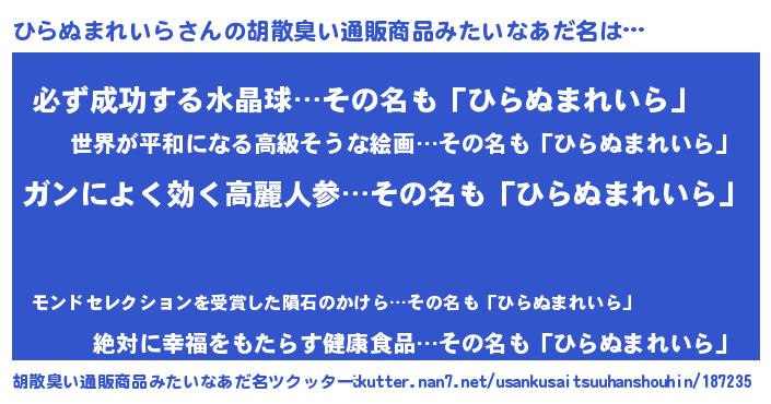 | 意味不明あだ名 | 『自称ひらぬまれいら』 |