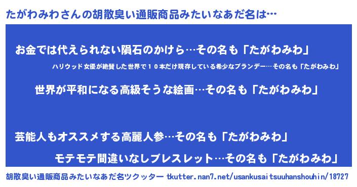 | 意味不明あだ名 | 『たがわみわフォーエバー』 |