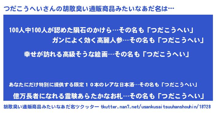 | 意味不明あだ名 | 『つだこうへいフォーエバー』 |