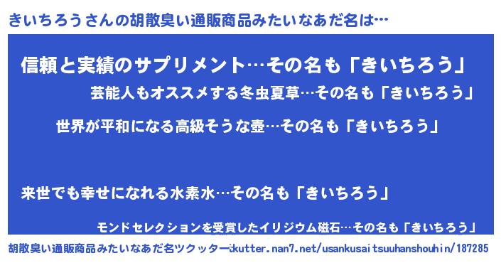 | 意味不明あだ名 | 『きいちろうフォーエバー』 |