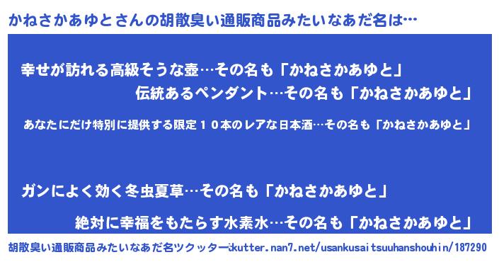 | ヒーロー風カッコイイあだ名 | 『仮面カネダー』『ネオカネサカアユト』 |