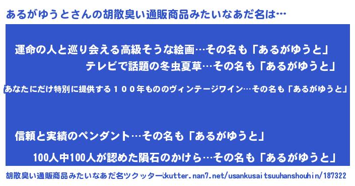 | 意味不明あだ名 | 『住所不定無職あるがゆうと(6歳)』 |