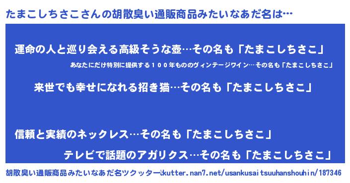 | 意味不明あだ名 | 『永久保存たまこしちさこ』 |