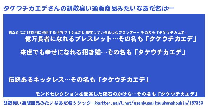 | ヒーロー風カッコイイあだ名 | 『ネオタケウチカエデ』『仮面タケダー』 |