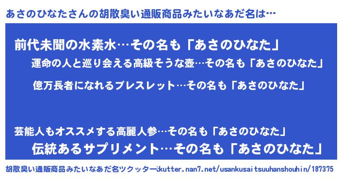 | ヘコむあだ名 | 『あさにー』『あさのひなた(爆)』 |