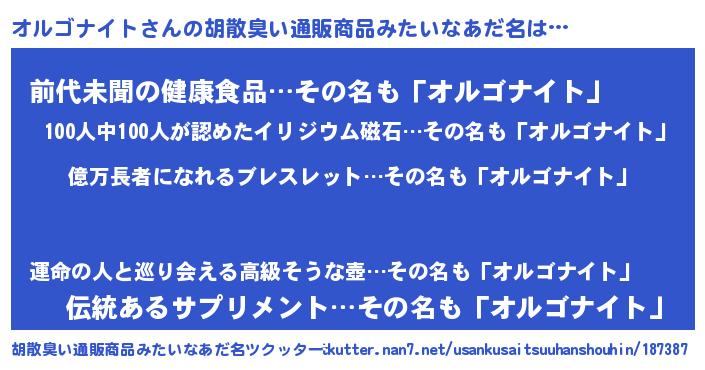 | ヘコむあだ名 | 『オルにー』『オルゴナイト(苦笑)』 |