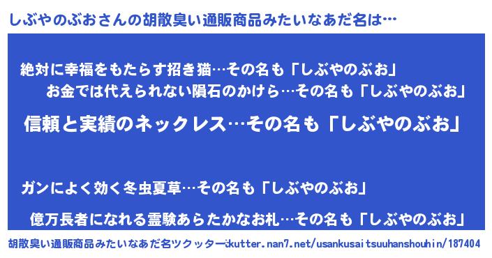 | 意味不明あだ名 | 『とにかく怪しいしぶやのぶお』 |