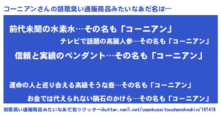 | 意味不明あだ名 | 『とにかく怪しいコーニアン』 |