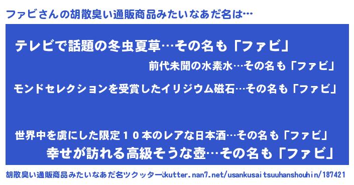 | 意味不明あだ名 | 『眠気覚ましガムファビ味』『自称ファビ』 |