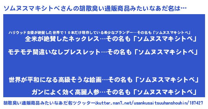| 男性向けラノベタイトル風あだ名 | 『ソムヌスマキシトベアートオンライン』 |