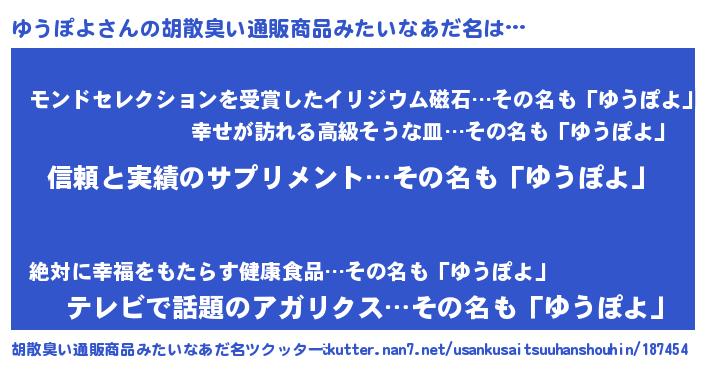 | 意味不明あだ名 | 『とにかく怪しいゆうぽよ』 |