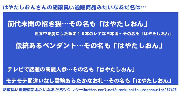 | ピコ太郎風あだ名 | 『ハヤ六郎』『ピコハ郎』『ハコ十郎』 |