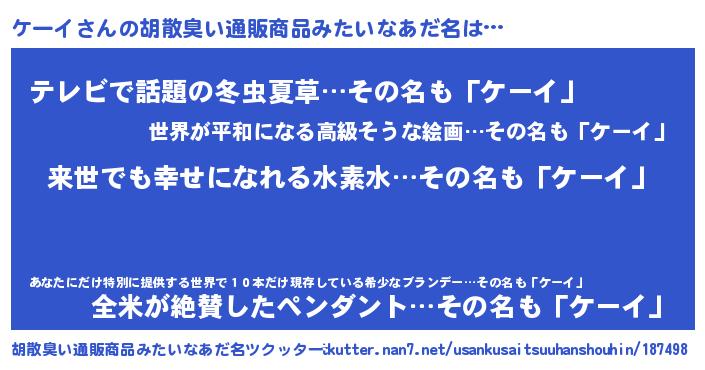 | ヒーロー風カッコイイあだ名 | 『ネオケーイ』『最強戦士ケーイ』 |