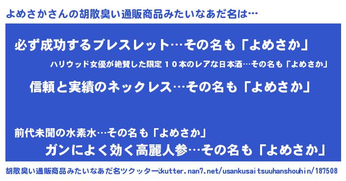 | 意味不明あだ名 | 『とにかく怪しいよめさか』 |