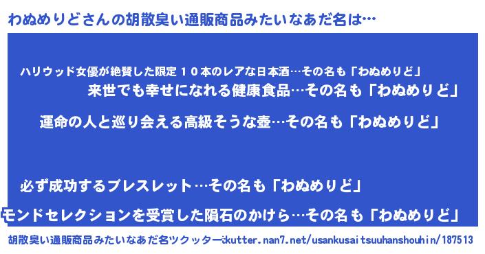 | 意味不明あだ名 | 『わぬめりどフォーエバー』 |