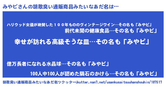 みやピさんの胡散臭い通販商品みたいなあだ名をツクッター!