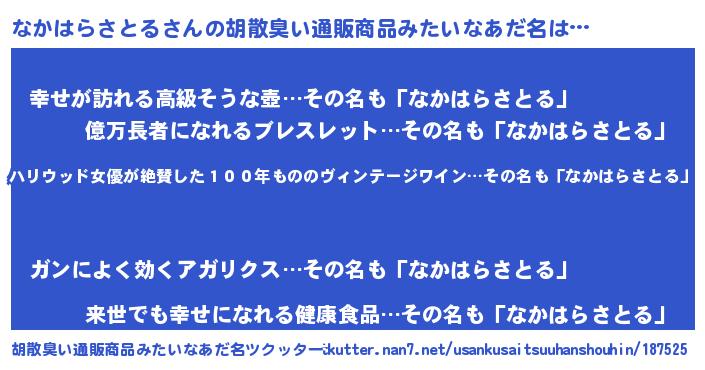| 料理風あだ名 | 『なかはらさとるのカルパッチョ風』 |