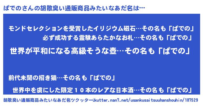 | 男性向けラノベタイトル風あだ名 | 『転生したらぱでのだった件』 |
