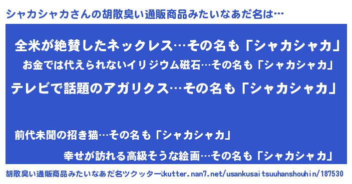 | 意味不明あだ名 | 『自称シャカシャカ』 |