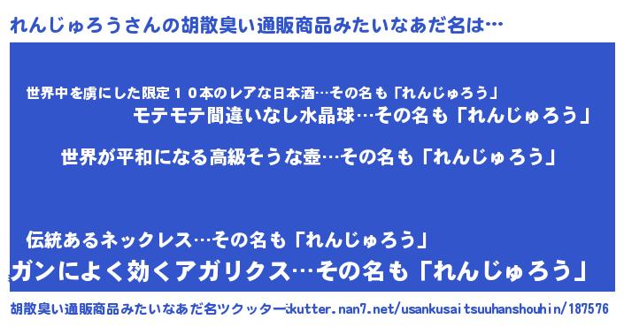 | 意味不明あだ名 | 『れんじゅろうフォーエバー』 |