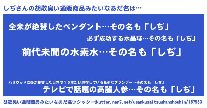 | ヘコむあだ名 | 『しぢ(遠い目)』『しぢぷりん』 |